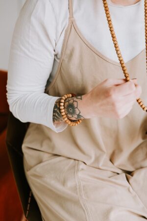 Wearing your Lotus Seed mala throughout the day serves as a reminder of your intentions and goals. Focusing on the present moment by touching the beads can help distract from anxious thoughts as well as provide a reminder of the lotus flower journey, offering a sense of strength and hope.