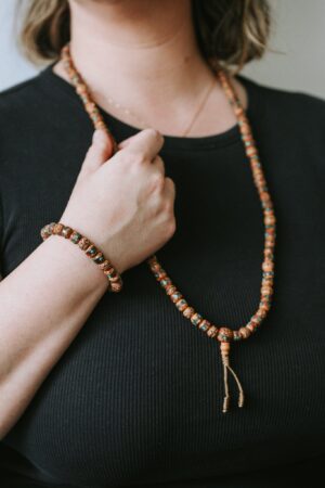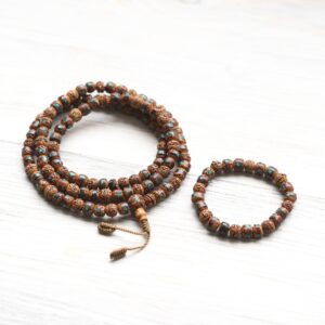 Embrace the power of Rudraksha and artistry of Nepal with our new mala necklace! Handmade in Nepal using inlaid Rudraksha seed beads grown and harvested in the Himalayas. The tradition of inlaid bead making in Nepal is deeply rooted in the country’s cultural and spiritual heritage.