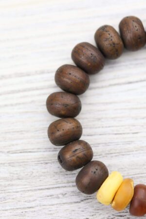- It features amazing small, dark Bodhi Seed beads found in Kathmandu along with incredible true Baltic Amber beads from Poland. Each Amber bead is completely unique.