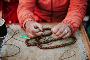 Bodhi seed beads can be used for counting all types of mantras as well as other prayers. These dark-speckled seed beads have special meaning for all seekers of divine wisdom. “Bodhi” in Sanskrit means enlightenment; as an “enlightened” seed, many practitioners use these malas for their essence and inherent teachings within each seed.