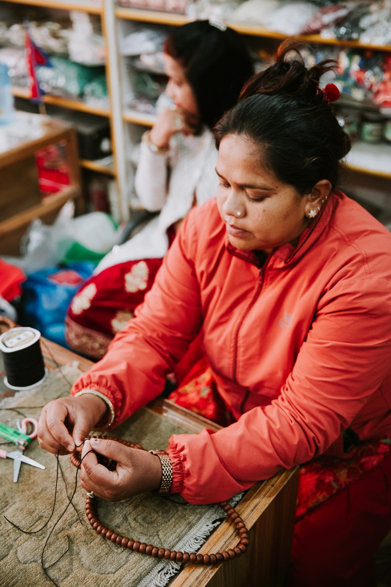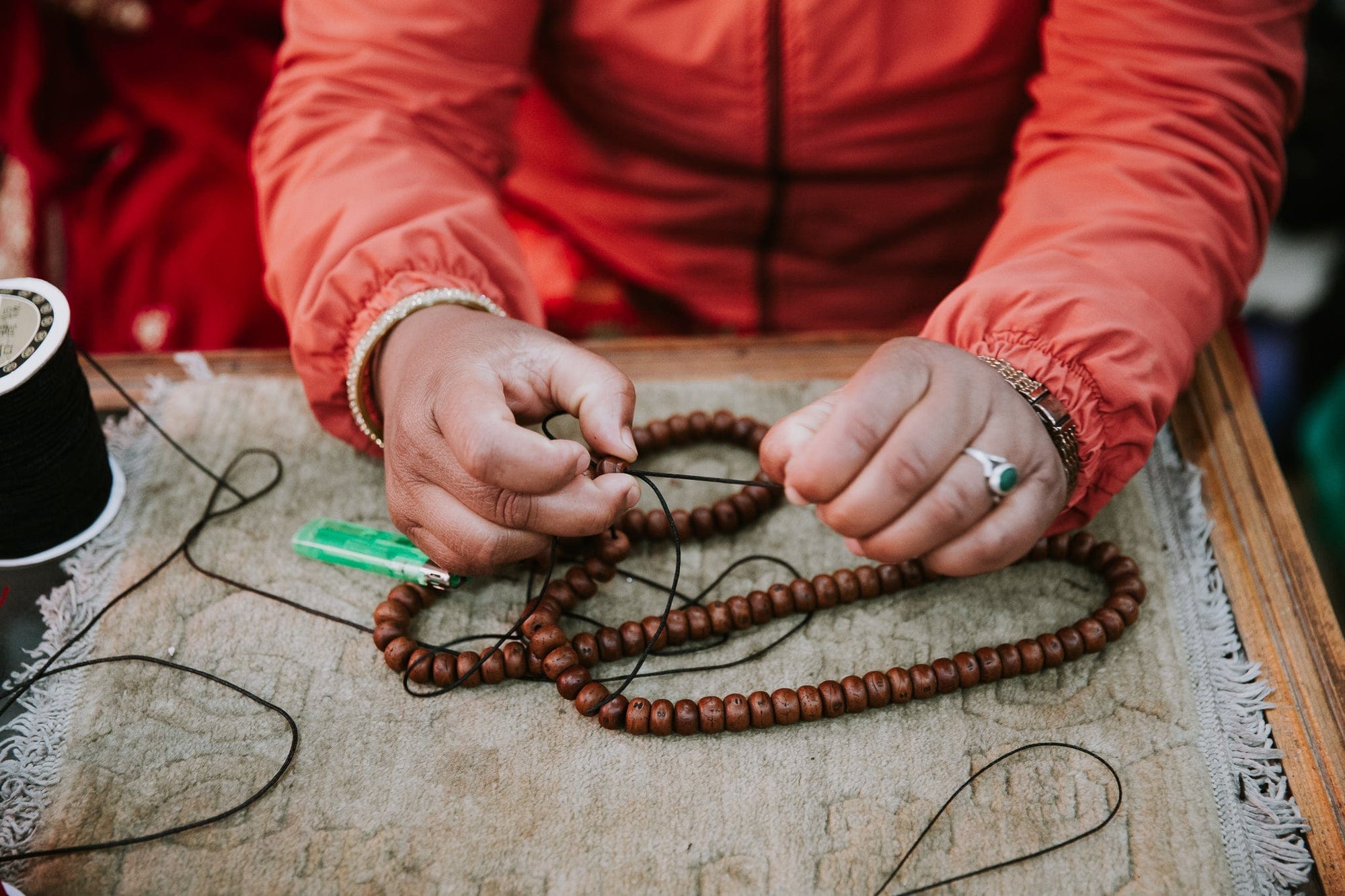 - Handmade in Kathmandu under the shadow of the Boudhanath Stupa, both items are simply strung and finished with a guru bead and black knotted ends.