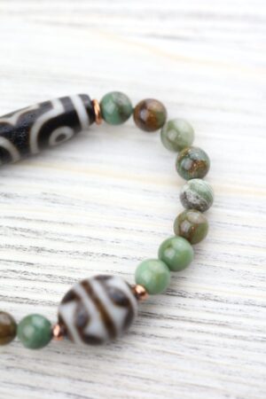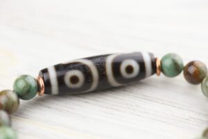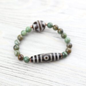 - Limited to 10. A fun, creative, and limited edition bracelet made with Pilbara Phrase Beads and a 3 Eye Dzi and rare true agate Fortune Wave Dzi bead, both from DharmaShop’s personal collection from Kathmandu and Taiwan.