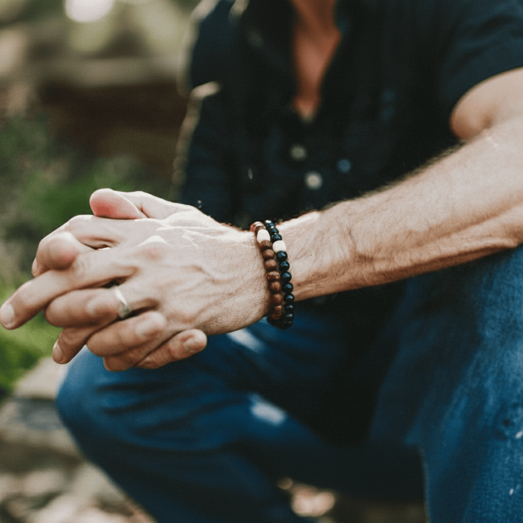 - You will love the feel of this bracelet. The transition between the soft Wood and the hard shiny Onyx creates a contrast that promotes concentration during meditation, and the grounding energy of both materials promote a sense of stability and centeredness.