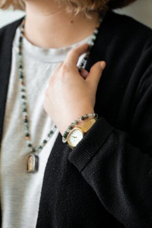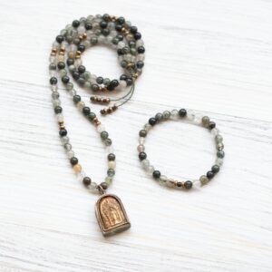 Made with genuine green Rutile Quartz known to enhance all chakras as it connects the wearer’s energy from the Root Chakra to the Crown Chakra. Known to shield the wearer from negative energy and soothe dark thoughts. It also facilitates dream recall, which can help you to gain insights into your subconscious mind.