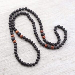 - This simple and meaningful mala includes lava rock from Bali and oiled Thai rosewood beads hand strung on heavy duty stretchy cord.