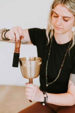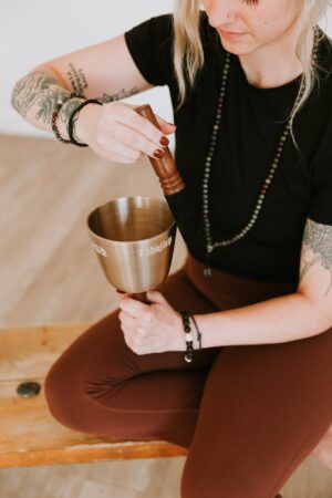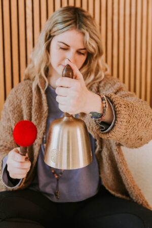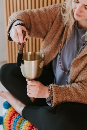Elevate your practice with our Full Moon Singing Bowl with Carved Handle. Handcrafted under the Flower Moon, its resonant tones promote peace and mindfulness.