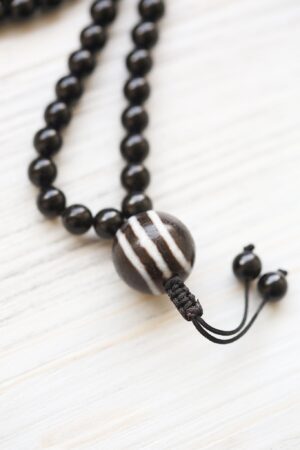 - Inspired by the love for our Pyu Dzi Protection Bracelet, we designed this matching 108-bead mala as its mindful companion. Hand-strung in Michigan with sleek Black Tourmaline and a rare dark Pyu Dzi bead from DharmaShop’s curated collection — built on founder Sander Cohen’s two decades of expertise collecting and studying Dzi across Nepal and Taiwan.