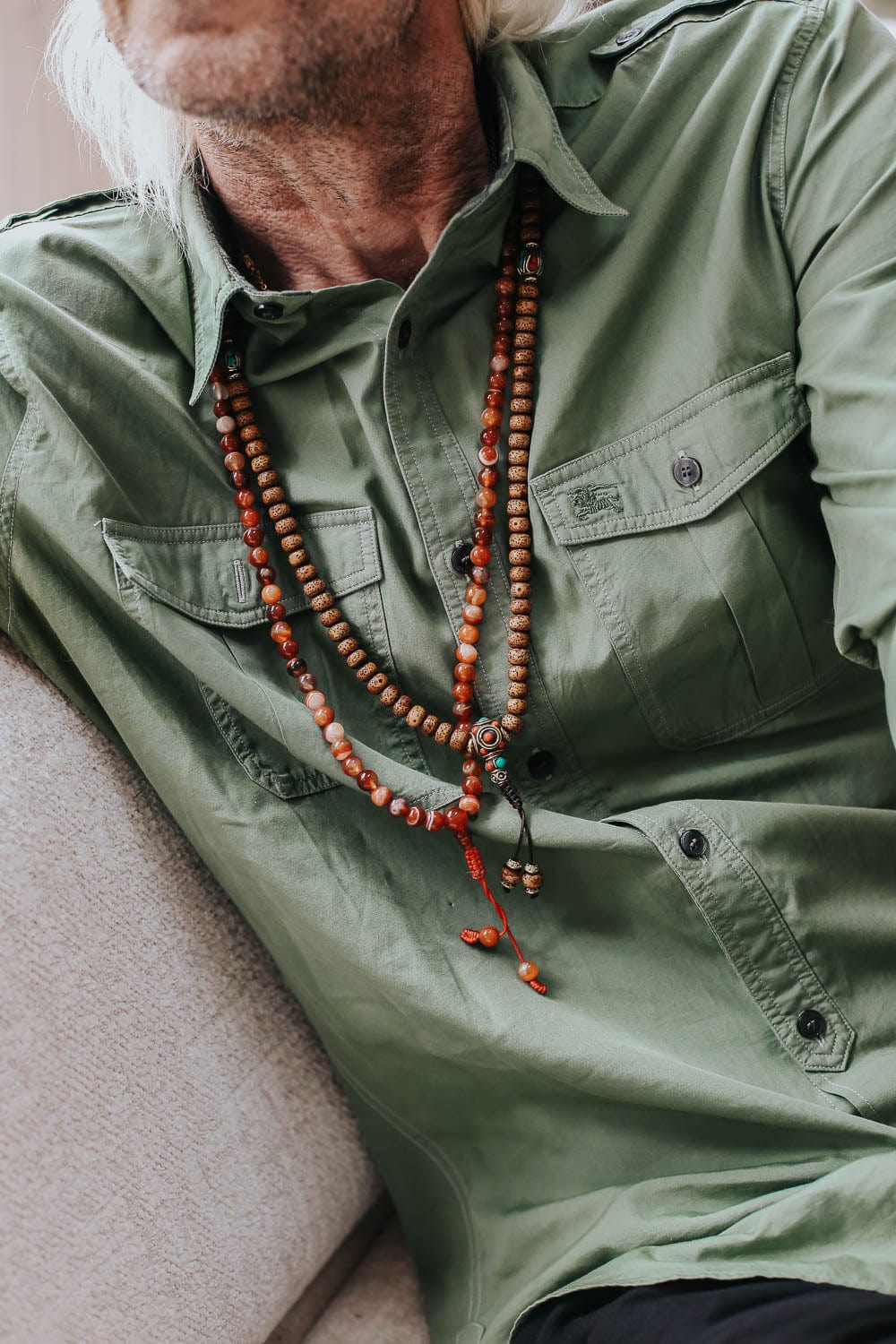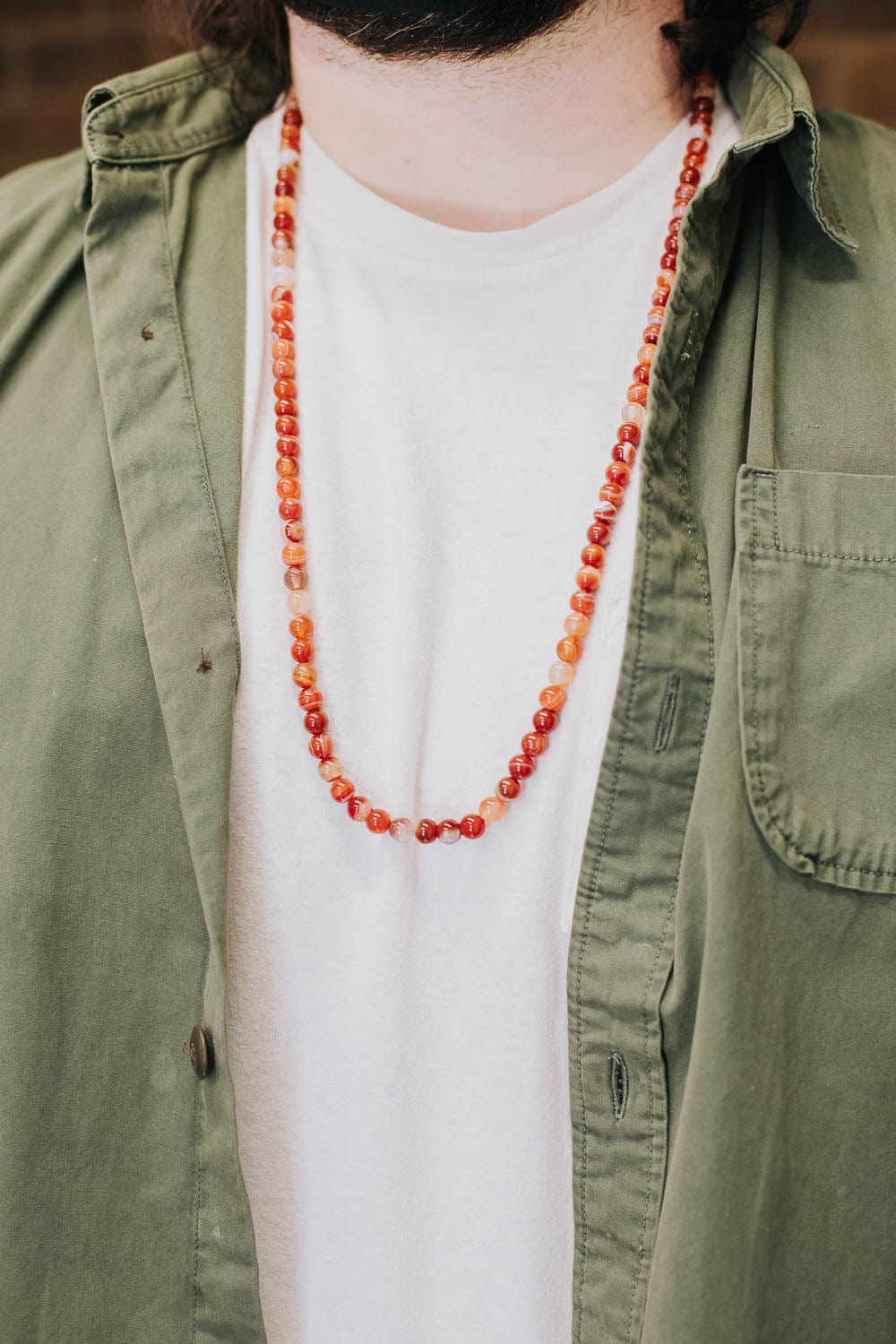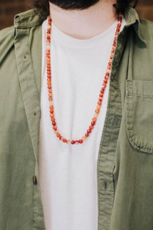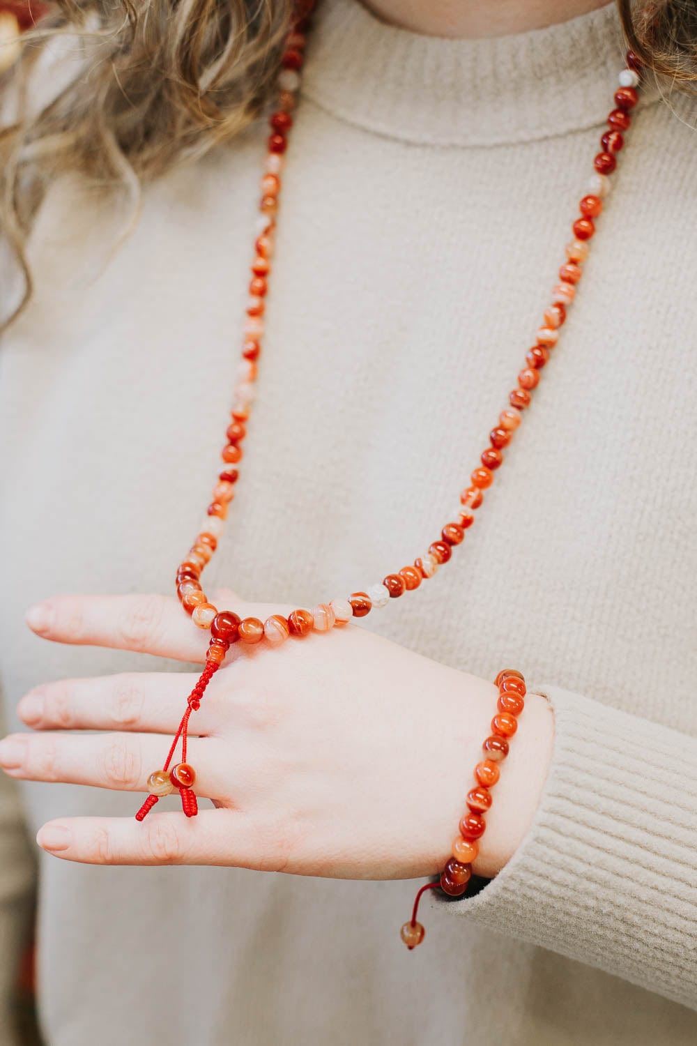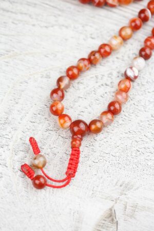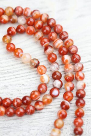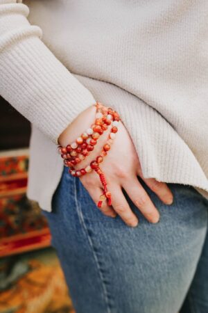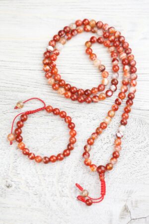 - Red Sardonyx Agate has grown in popularity over the last year both in our office and with our customers! This handcrafted 108 bead mala is made in Nepal using powerful Sardonyx stones.