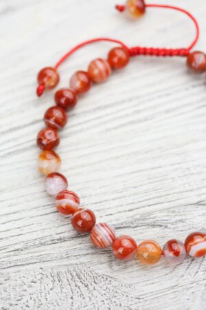 - Red sardonyx agate has grown in popularity over the last year both in our office and with our customers! This handcrafted wrist mala is made in Nepal using powerful sardonyx stones.