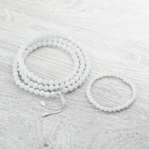 Selenite Everyday™ stretch mala bracelet, handmade in Nepal. A Crown Chakra crystal for clarity, cleansing energy, and peaceful meditation.