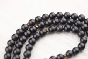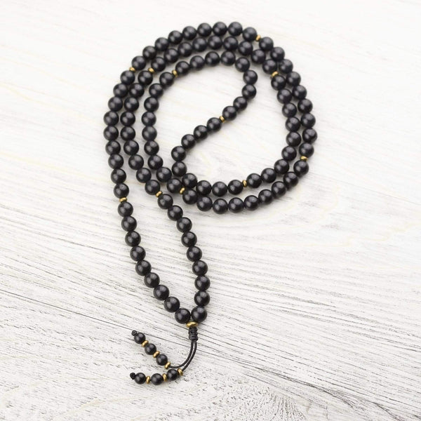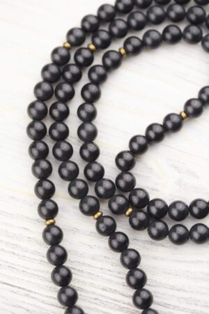 - This Shungite 108 bead mala features authentic Shungite beads hand strung with brass accents.