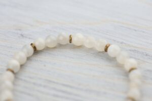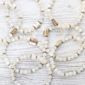 - Each bead glows with soft pearlescent detail, offering a serene bracelet that’s both grounding and uplifting.