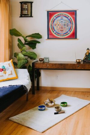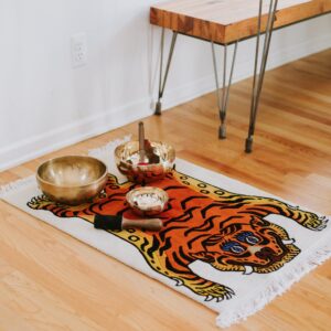 Your bowl comes with a wood and suede striker and Bhutanese cushion hand stitched and stuffed with up-cycled materials. Also includes a DharmaShop keepsake bag.