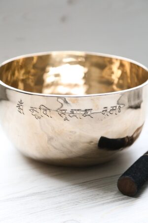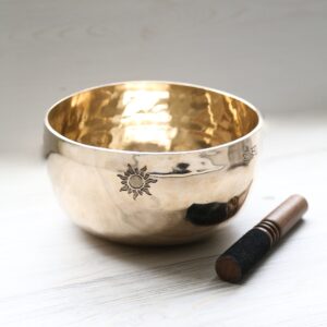 Translating to, “dispeller of darkness,” chanting the Sun Mantra helps to illuminate the mind, dispel negative thoughts, and bring inner clarity. This bowl, a physical embodiment of the sun’s energy, is a powerful tool for sound healing. The mantras ability to dispel darkness is amplified by the bowls vibrations. Chanting or focusing on the mantra while playing your bowl aligns you with this powerful energy, promoting feelings of vitality, warmth, and optimism.