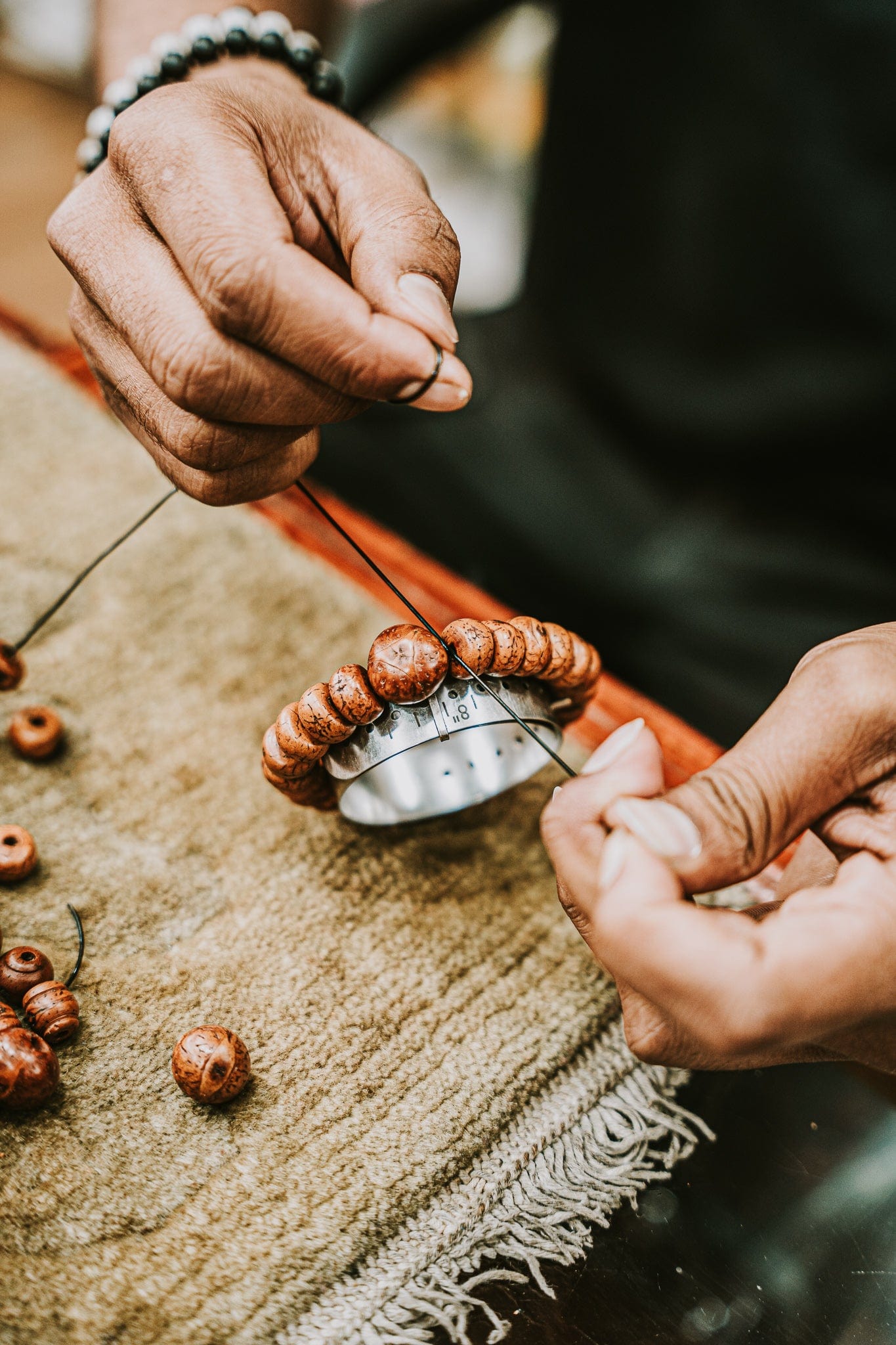 - 15 of each size available! This isn’t just another Bodhi Seed bracelet, it’s a step above. Hand-strung in Kathmandu with high-quality Phoenix Eye Bodhi Seeds, traditionally cut on both ends and naturally stained to achieve a warm, golden finish that enhances the seed’s natural details.