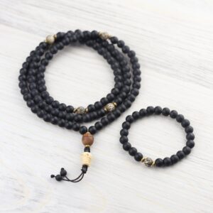- A 108 bead mala necklace version of a revamp and re-issue of an all-time DharmaShop favorite bracelet we last sold in 2017.