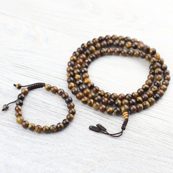 - Both customer favorites, this 108 bead mala necklace and matching bracelet are hand strung in Nepal.